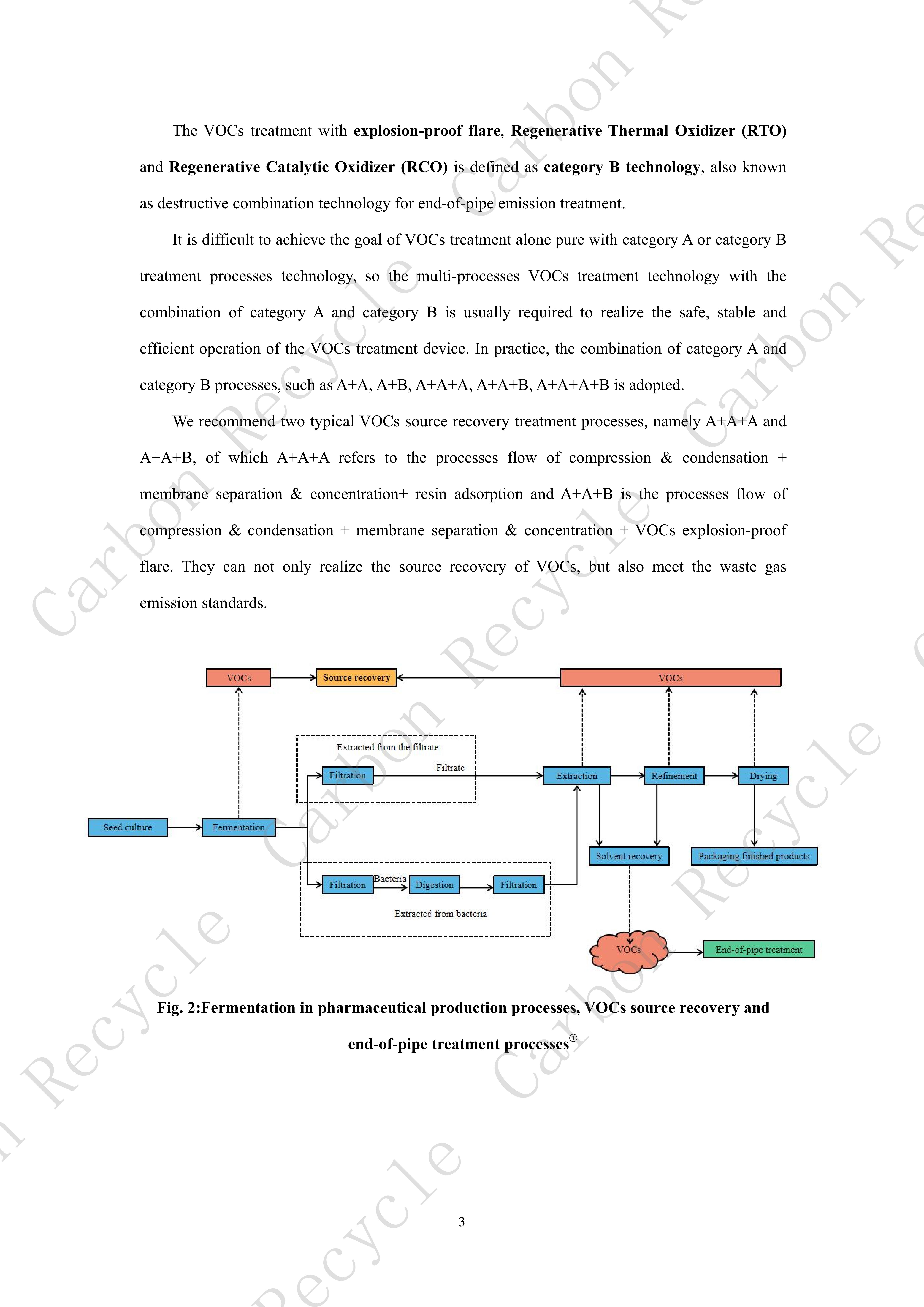3. End-of-pipe treatment: For most of the fugitive emissions and a small part of the organized emissions of VOCs, the end-of-pipe treatment processes based on "combustion" is usually adopted due to their low concentration and complex composition.