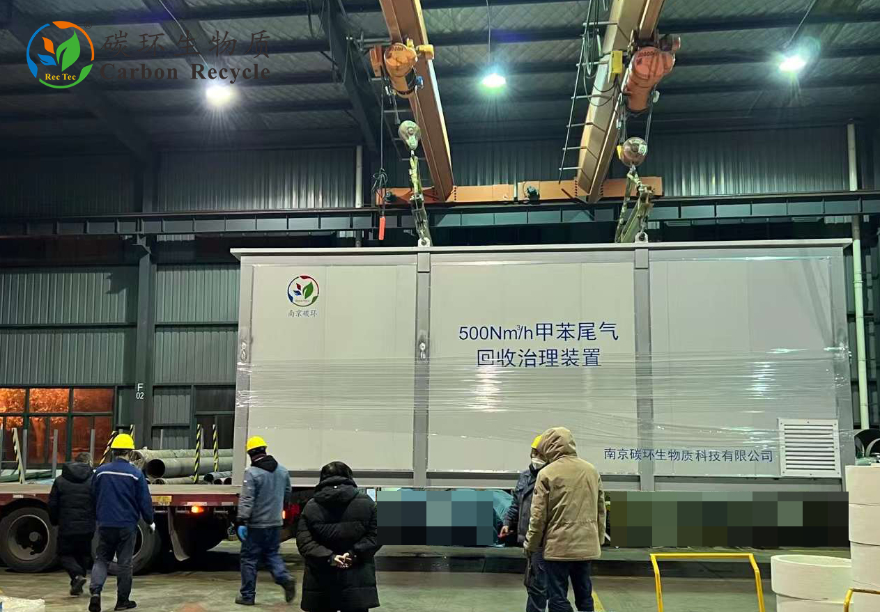 南京碳環(huán)工作人員根據(jù)實(shí)地勘察項(xiàng)目現(xiàn)場,為客戶設(shè)計(jì)、制造了“甲苯尾氣回收治理裝置”。